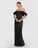 Black Satin 3D Flower Off The Shoulder Mermaid Gown