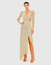 Gold Metallic Puff Sleeve Front Twist Cut Out Gown
