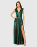 Green Cap Sleeve Deep V Neck High Slit Metallic Gown