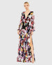 Black Floral Print Illusion Long Sleeve V Neck Gown