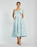 A chic floral brocade midi dress with a square neckline and oversized bow—perfect for daytime events and garden parties.