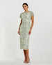 Green Embellished Mesh Fitted Cap Sleeve Cocktail Dress