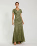 Crafted from luxurious embroidered fabric, this gown features a flattering trumpet silhouette, sheer cap sleeves, and stunning embellished detailing.