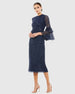 Dazzle in our Sequin and Hand-Beaded Midi Dress. Featuring a fully lined bodice and skirt, semi-sheer unlined sleeves, a round high neckline, and 3/4 bell sleeves with layered ruffles. The back vent slit adds movement, making this dress perfect for formal events, evening parties, or special occasions, this dress combines glamour and grace for a show-stopping look.