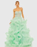 Indulge in luxury with our Strapless Corset Detail Tulle Layered Ball Gown. The sheer corset bodice, hand-beaded embellishments, and ruffled full skirt create a breathtaking ballgown silhouette. Perfect for formal events and special occasions.