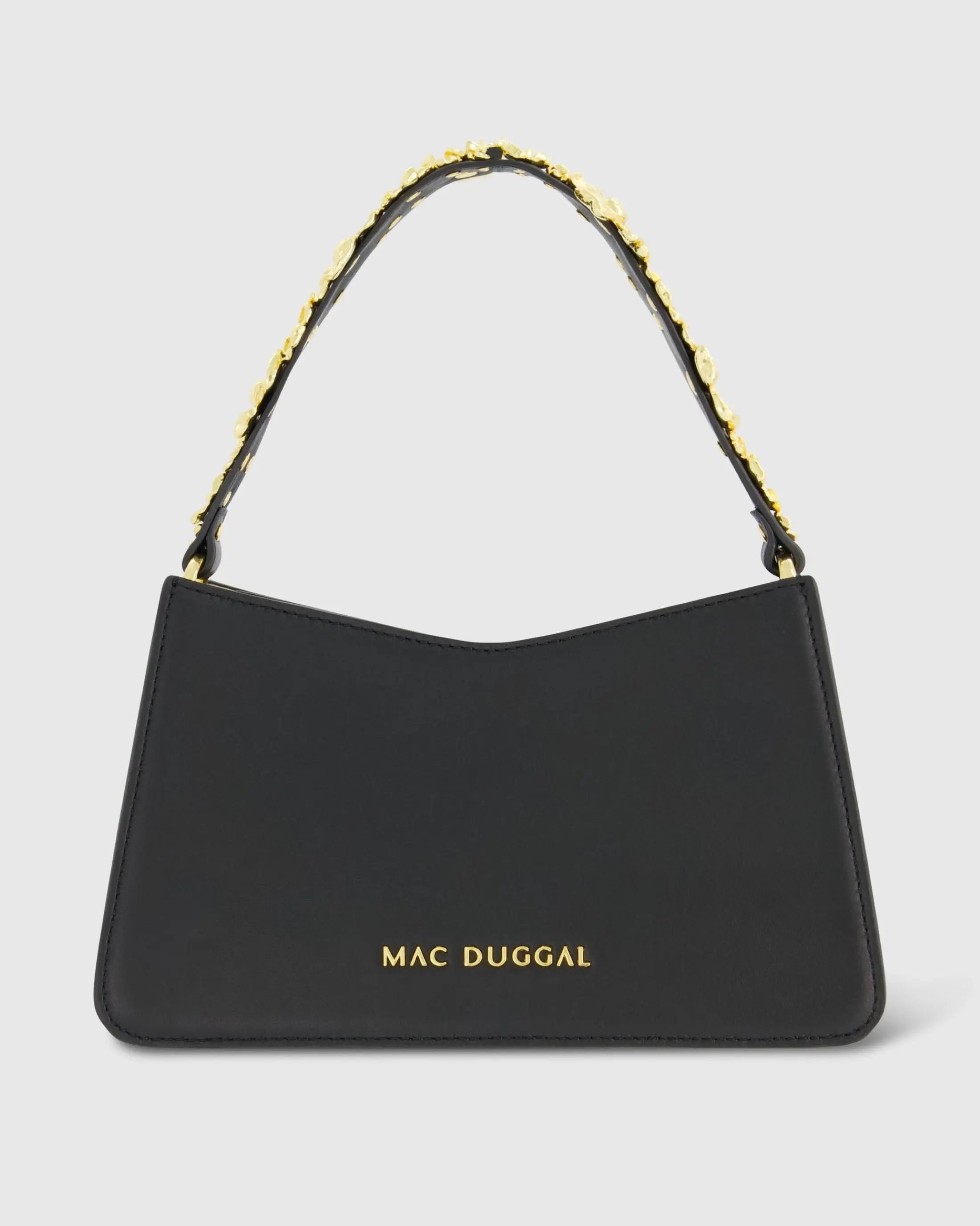 The Gold Floral Nappa Leather Shoulder Bag combines modern elegance with timeless style, featuring a gold floral detail along the strap for a sophisticated, feminine touch.