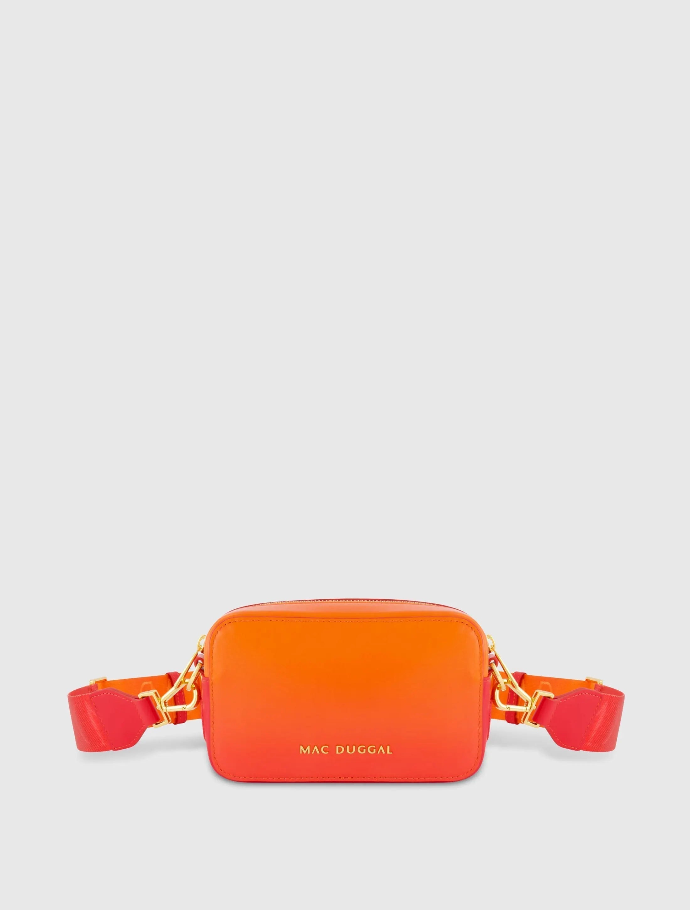 Elevate any look with our Ombre Leather Crossbody Camera Bag. A vibrant statement piece crafted from luxurious leather, this bag is perfect for carrying your essentials in style.