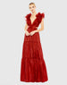 Ruffled Shoulder Cut Out Soft Tie Back Tiered Gown