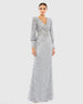 Glamour meets sophistication in this sparkling sequined gown. With a sequined mesh overlay and fully lined bodice and skirt, this dress exudes elegance. The faux wrap bodice and beaded waist detail add a touch of glamour to this V-neckline dress. Perfect for a special occasion.